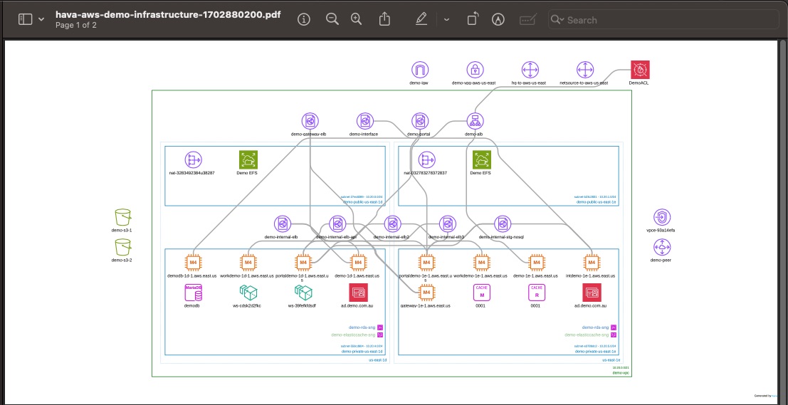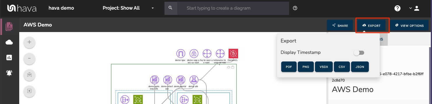 Any diagrams that are automatically generated or created using the custom search commands can be exported for use outside of the Hava application.