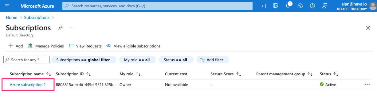 2. Copy the Subscription ID and paste into Hava.
