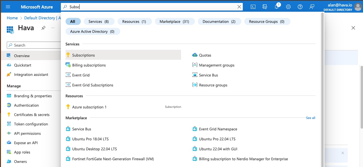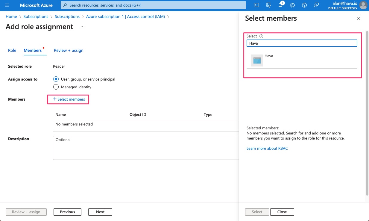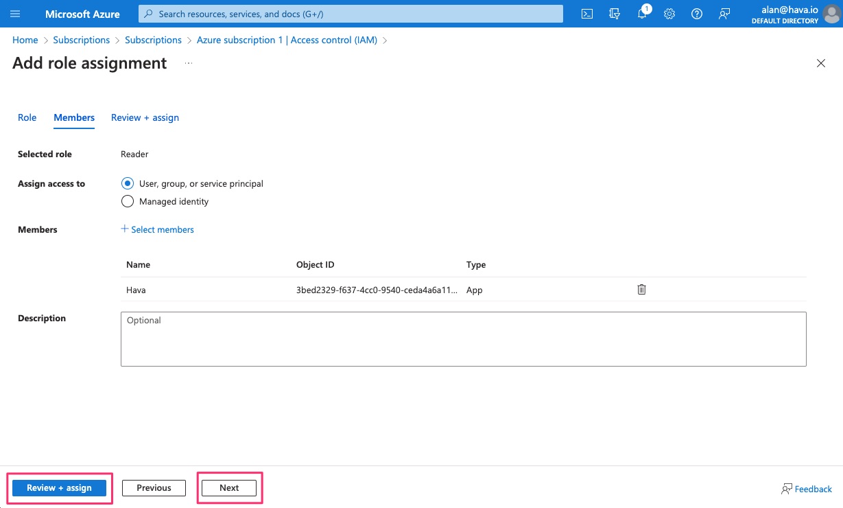 There are quite a few steps required to allow Hava to access your Azure resources using the Azure Portal.